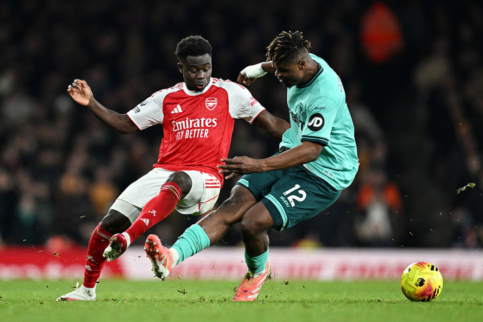 萨卡开出的角球击中远门柱后,不偏不倚地砸在毫无防备的约翰斯通的后脑勺上弹入空门,阿森纳就这么如释重负地领先了。