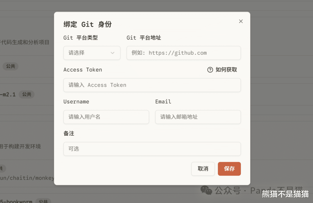 除了对已有仓库的处理,MonkeyCode高度集成了GitHub、GitLab、Gitea、Gitee,支持在配置中直接绑定自己的git身份,在完成绑定之后,你可以将你开发的项目无缝push过去。