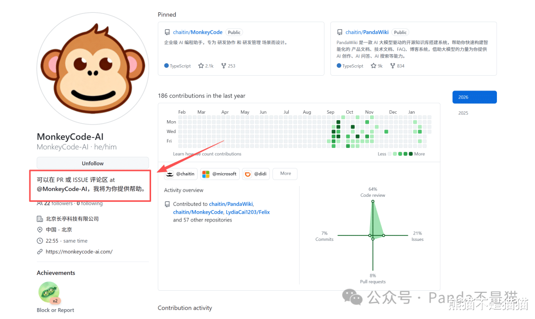 而在git平台上,你可以在PR或者ISSUE手动召唤MonkeyCode-AI帮你审查项目代码,真正融入了 CI/CD(持续集成/持续交付) 的工作流。