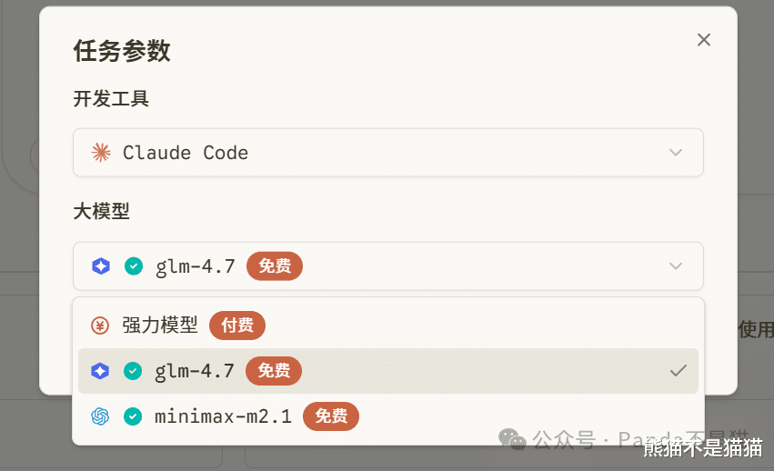 在模型选择上,目前接入了DeepSeek、Kimi、Qwen、GLM等模型,其中强力模型内置了gpt、claude-sonnet、gemini等模型,注册附送的20000点算力足够折腾了。即便是用完了,MonkeyCode目前免费提供了glm4.7,日常使用完全是足够了。