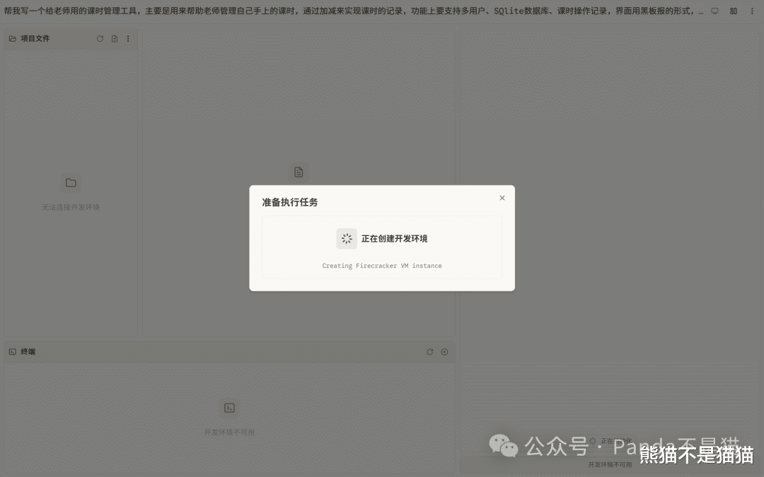 下达任务之后MonkeyCode会先进行云端环境的构建,将其开发所需的环境准备好,相当于一个云端的一个独立沙箱环境。