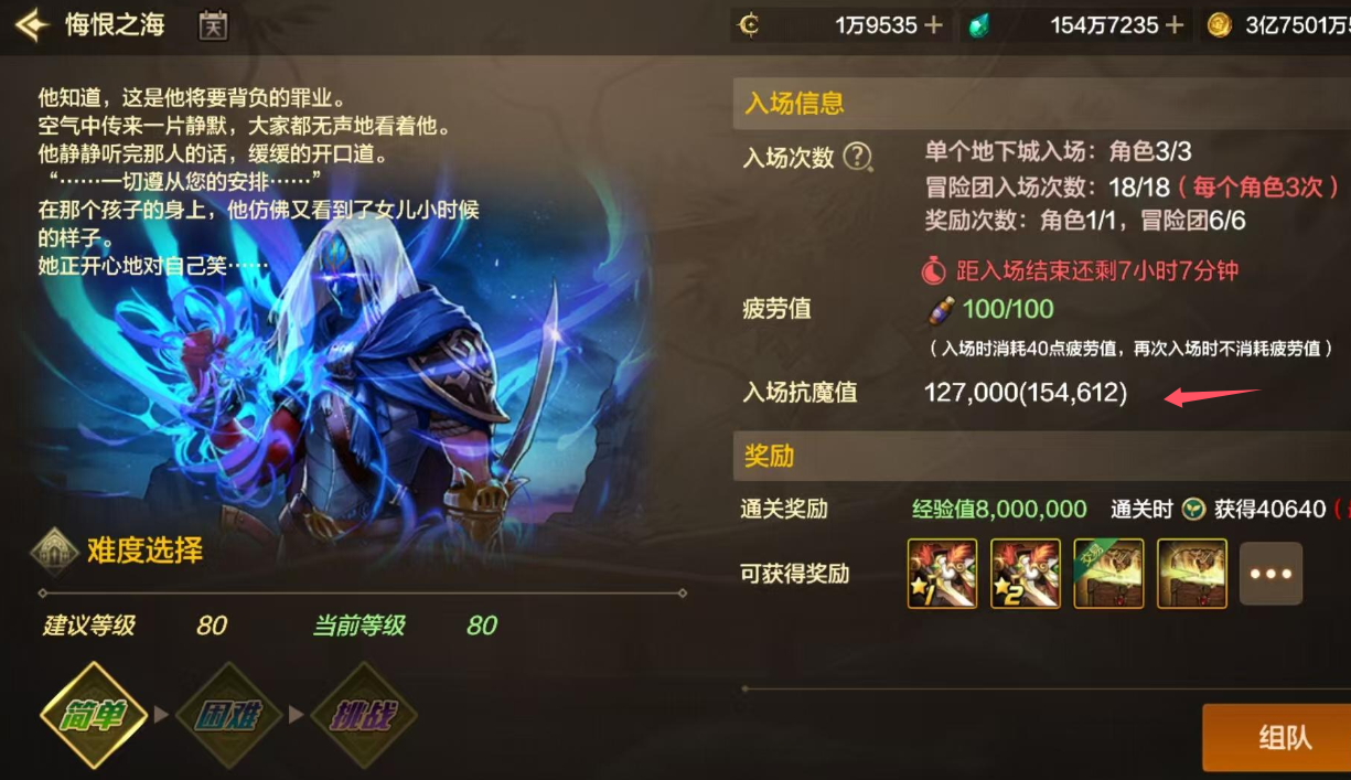 除此之外,这次更新还上线了一个新的超越本,悔恨之海。这个新超越本的难度还是不小的,最高的挑战难度入门门槛就高达16.2万抗魔值。这个抗魔值目前也只有最顶级的那一批土豪大佬才能达到,普通玩家也只有14万左右的抗魔值。不过好在简单难度只需要达到12.7万抗魔值就行了,而且经过体验服玩家测试,虽然这个新超越本的难度确实是有,但是只要多花点时间还是能通关的,也就是说只要能达到入门门槛的抗魔值就能通关。