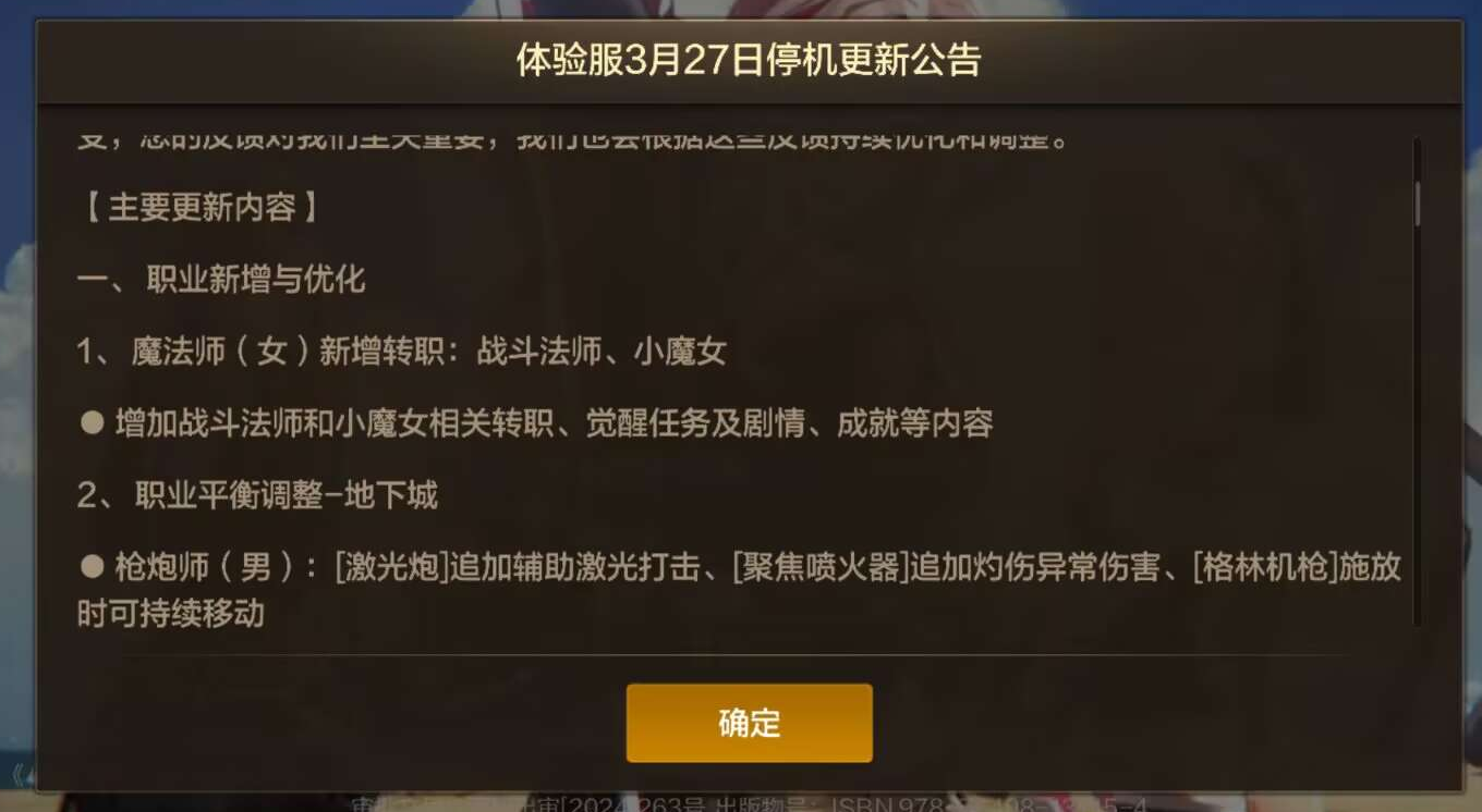 这次27号体验服更新主要是对一些职业进行了平衡,重点是一些冷门职业获得的意外加强,并且优化了一些技能效果。另外还有魔法师的两个新职业战斗法师和小魔女也是上线了,这也是让魔法师玩家狂喜啊,这下囤的转职书终于是可以用了。