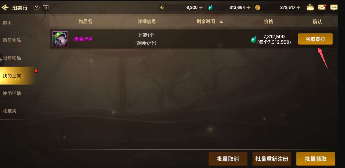 而这张卡片在隔壁服拍卖行的价格可是不低的啊,一张就卖到了731万泰拉,而且作为版本最顶级的卡片,土豪大佬也是抢着买的,上架就被秒了。