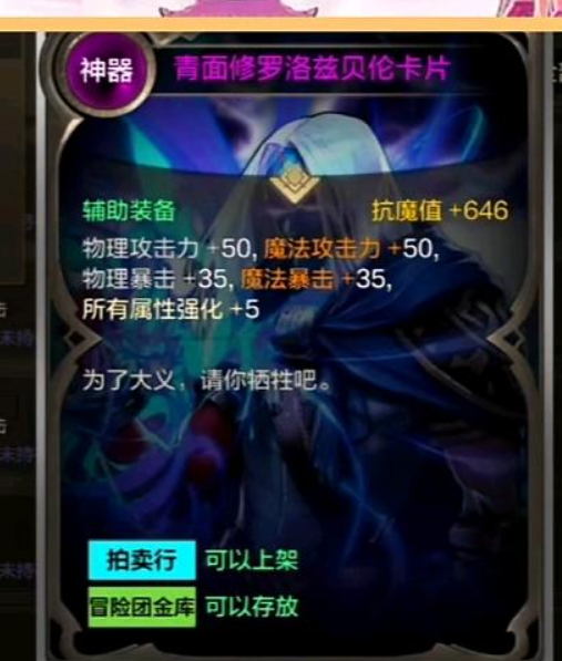 而且不管是挑战难度还是普通难度都是有机会获得到这张新的超越卡片的,而这张卡片在隔壁服被称之为“黑龙神卡”。这卡片的属性也是一样的,增加了50点物理魔法攻击力,暴击加了35,并且还有5点全属性强化,而抗魔值也是增加了646点。这张卡片同样也是可以上架拍卖行的,要知道大家最多六个号参与新超越本,运气只要不是太差都有机会领到这“黑龙神卡”。