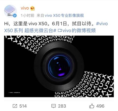 5月15日,vivo官微发出消息,vivo X50将于6月1日发布 ,一些电商平台已经开始预约。