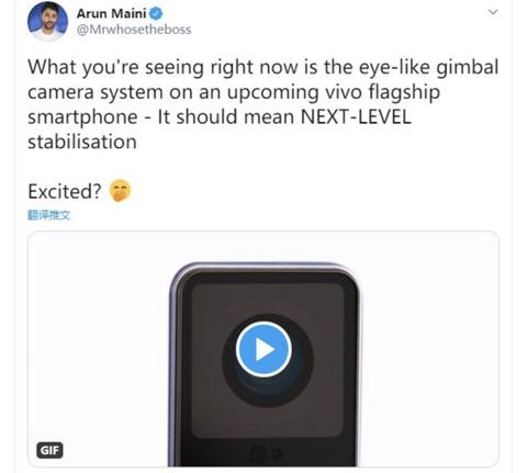 另外,vivo X50很可能支持微云台,此前,vivo APEX2020概念机中就应用了微云台技术, 海外博主Mrwhosetheboss发了一个疑似vivo的微云台防抖工作状态动图,结合vivo X50官宣Slogan是“专业影像旗舰”,X50搭载微云台摄像头确实大有可能。