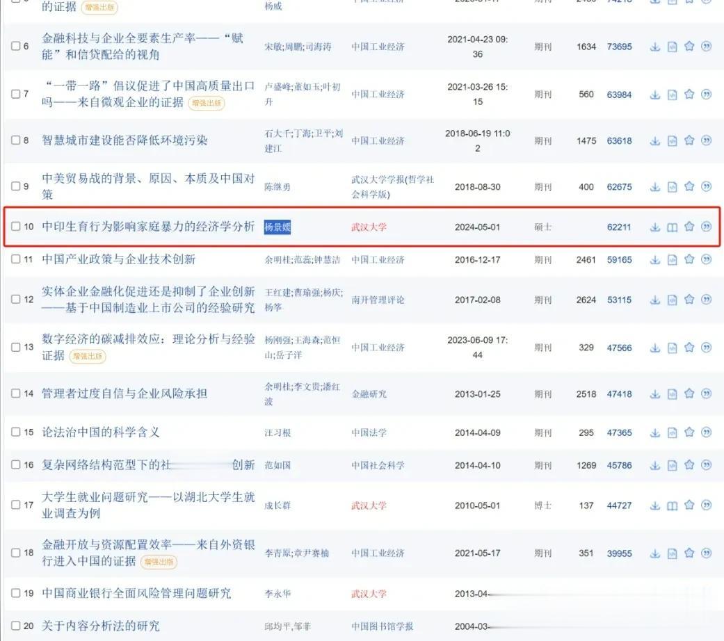 她的硕士学位论文《中印生育行为影响家庭暴力的经济学分析》堪称 “学术事故现场”: