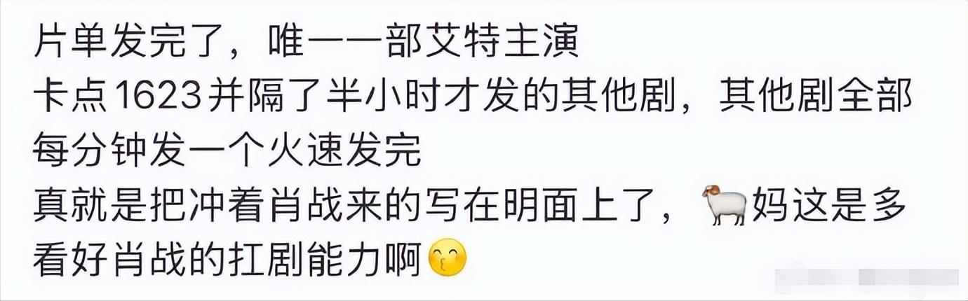 不仅如此,肖战的这部剧,央妈是发了两遍的,一个是海报版,一个是视频版的,之后大概是隔了半个小时后才发的其他剧。