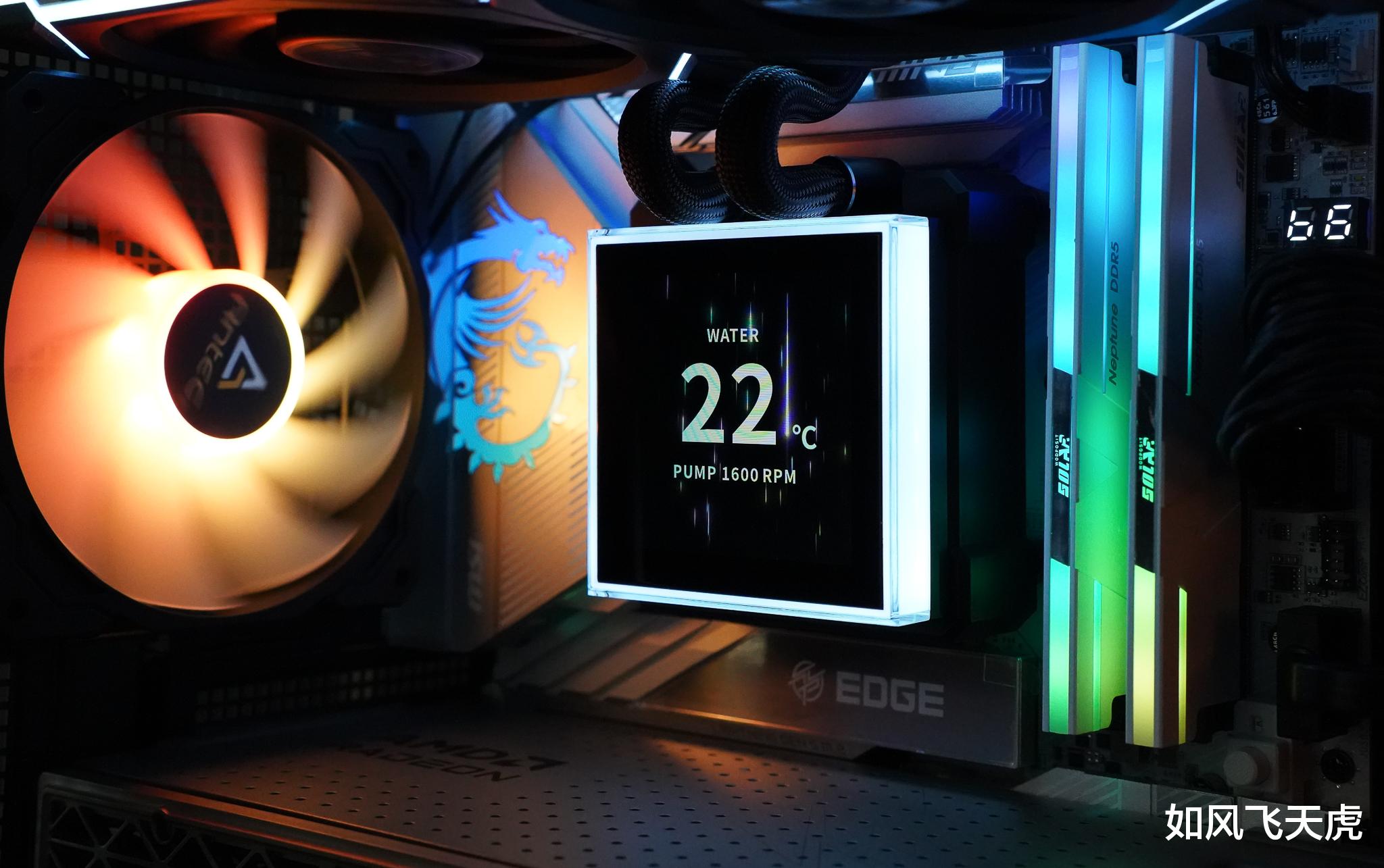 五 总的感受联力隐流二代方屏一体式水冷,通过冷排侧边的三支架结构,将水冷管完全隐藏于冷排边缘,有效避免了传统水冷管横穿机箱、影响美观与走线的问题。这一设计不仅让机箱内部整洁如初,更让方正风格的主板、内存与机箱形成统一视觉语言,真正实现“从里到外”的颜值统一,是追求极致整洁与美学表达用户的理想之选。