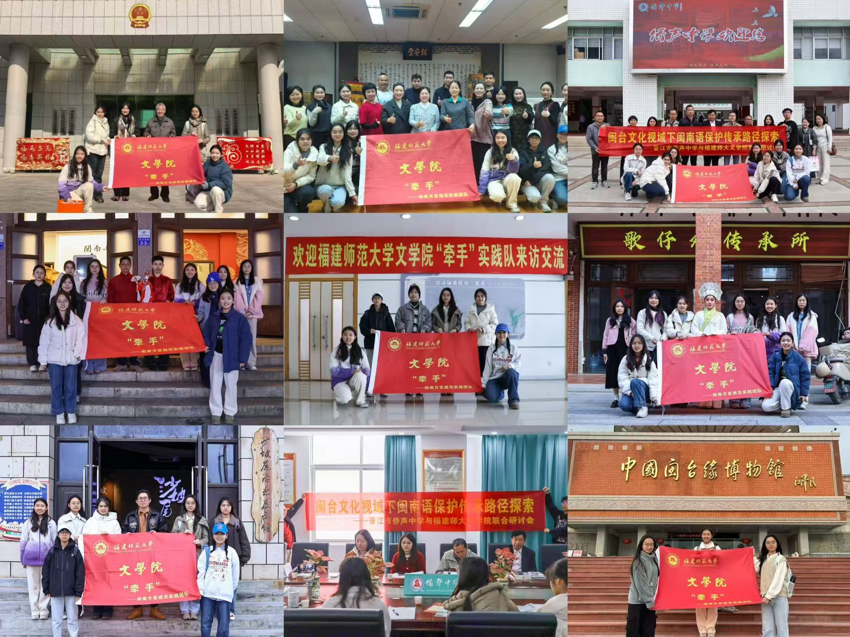 1月24日至27日,我院“牵手”实践队深入漳州、厦门、泉州等地,围绕闽南方言的保护传承与两岸文化联结,开展了一系列调研与实践。通过走访相关单位、观摩非遗展演、对话非遗传承人、举办交流研讨会、探访博物馆等形式,深入探寻闽南方言的根脉与生机,在传统与现代的交融中触摸文化温度,在两岸同源的对话中体悟血脉情深,串联起两岸青年共同守护语言文化根脉的多维图景。