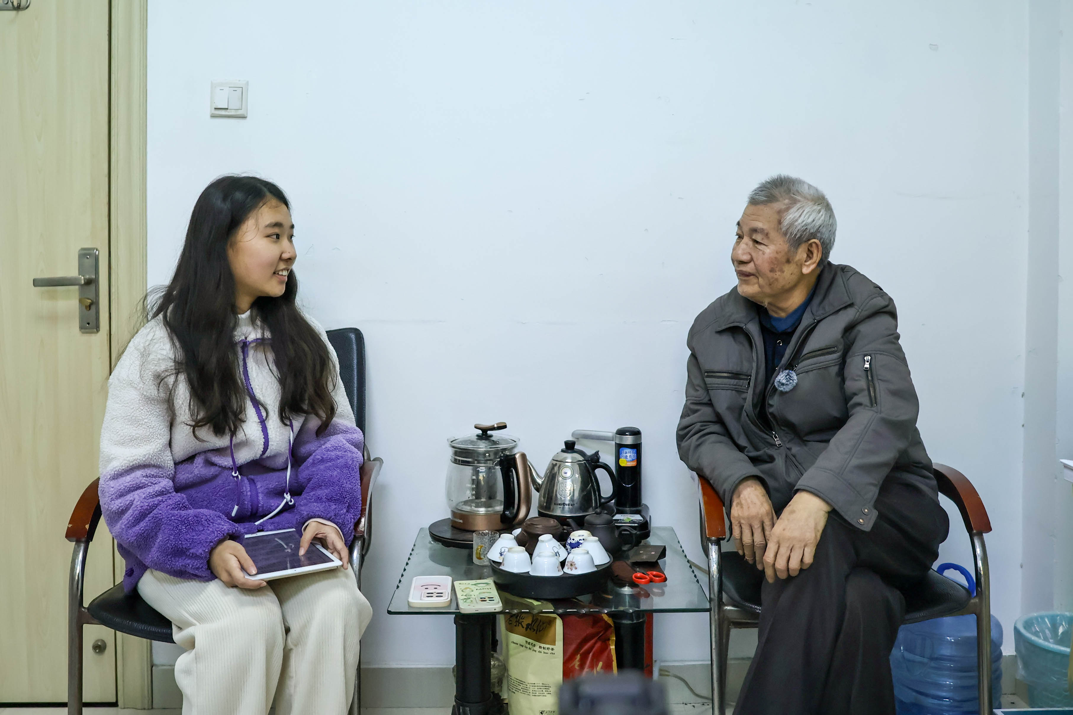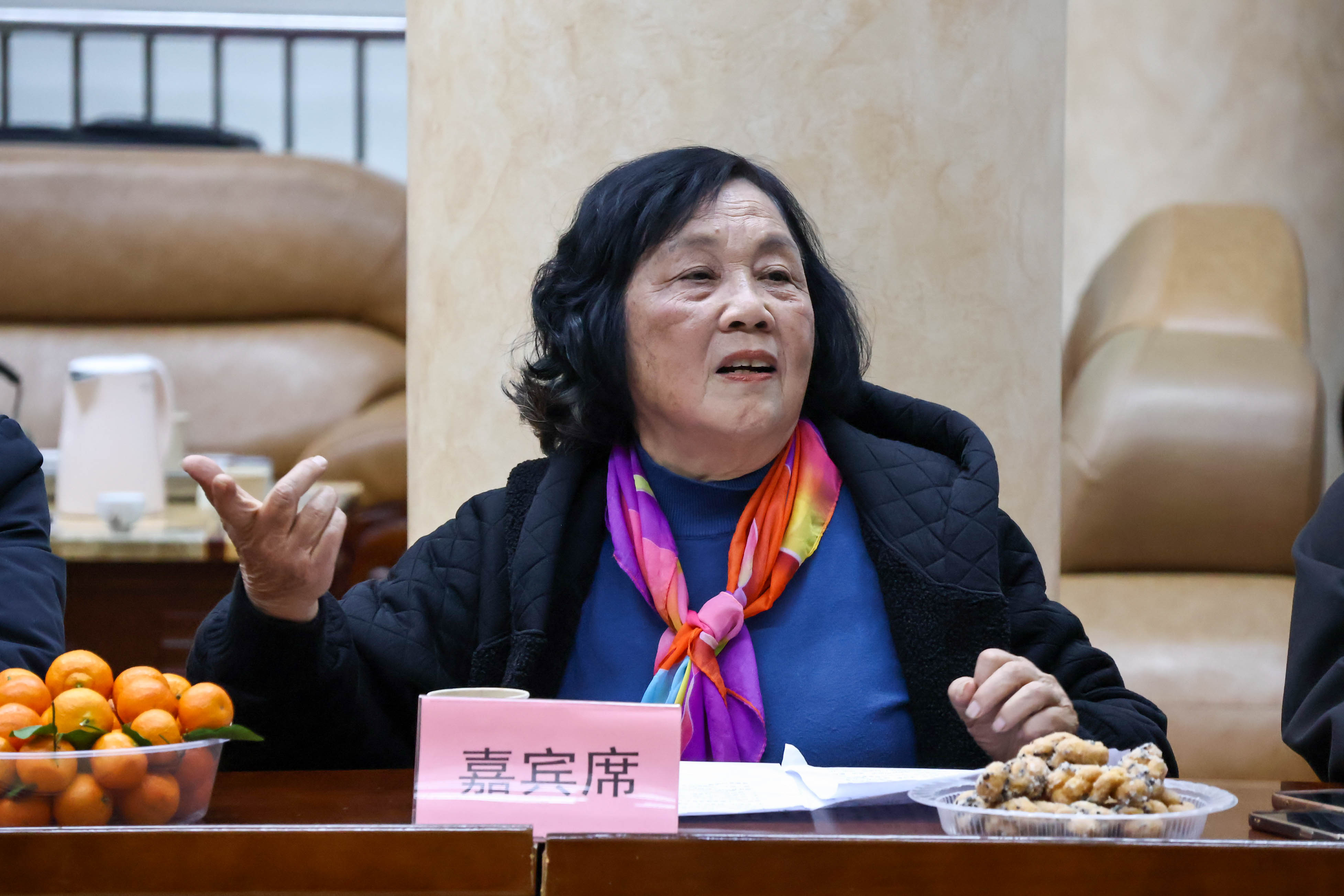 1月24日上午,实践队首站来到东山县铜陵镇人民政府文化促进中心,与东山铜陵古城文化研究会副会长、《东山方言音韵字典》作者许培斌老师深度交流。许老师系统介绍了闽南方言的起源脉络与独特语音体系,列举了“人客”“招辽”等鲜活生动的方言词汇,分享了《东山方言音韵字典》的编撰历程与创新思路,并传授了方言调研的实用方法,不仅让团队成员感受到闽南话的魅力,也为后续实践开展奠定了基础。