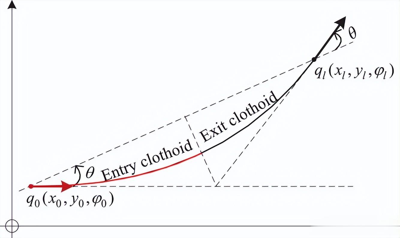 如果估算了当前曲率为κ0=0(直行),但预计前方曲率逐渐变化到某一值 κ1=1/R,那么可以使用曲率变率可控的样条拟合策略: