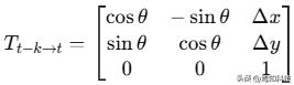 其中,Tt−k→t为从 t-k 帧到当前帧的车身坐标变换(来自里程计 / IMU / 步进式轨迹积分),即这个矩阵把“t-k帧下的某个点”转为“当前帧(t帧)下对应位置”。我们通常使用 SE(2) 或 SE(3) 中的位姿变换矩阵。对于 2D 平面(BEV),可使用 3×3 齐次变换矩阵: