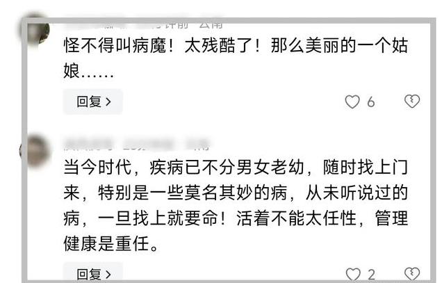 “怪不得叫病魔,太残酷了!可惜了这么美丽的一个姑娘”