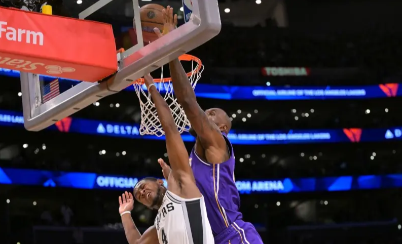 本场比赛,湖人的进攻常常陷入停滞。东契奇在高位长时间运球寻找一对一机会,其他四名湖人球员则几乎站着观看。全队仅有的18次助攻(对比马刺的28次)冰冷地揭示了球队进攻的凝滞。詹姆斯不得不长时间打无球,里夫斯也手感冰凉。这不是某个人的错,而是一个体系性的失灵——球的流动停止了。
