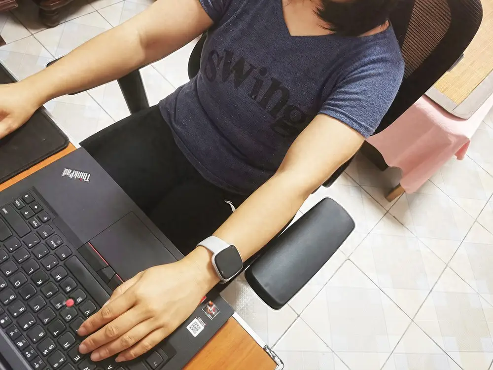 ③扶手适应性强:多角度机械臂设计,不同操作姿势下手臂都有支撑点,用起来比较灵活。