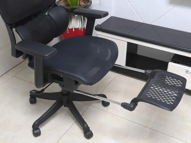 ③午休功能实用:140°后仰加隐藏脚托,拉出来就能半躺,办公室午休很方便。