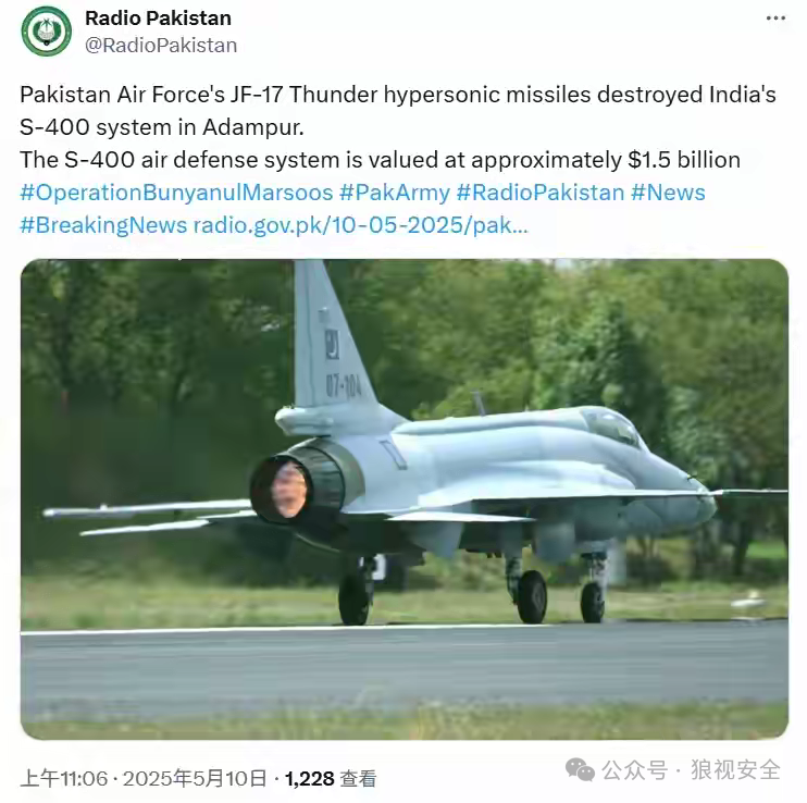 更值得一提的是,巴空军今天利用歼10C摧毁了印军部署在阿达姆普尔的S400防空系统,要知道S400是俄罗斯现役的主力中远程防空导弹系统,尽管在俄乌战场被摧毁过,但被中式武器摧毁还是头一回,这也再次印证了中式武器的作战性能。