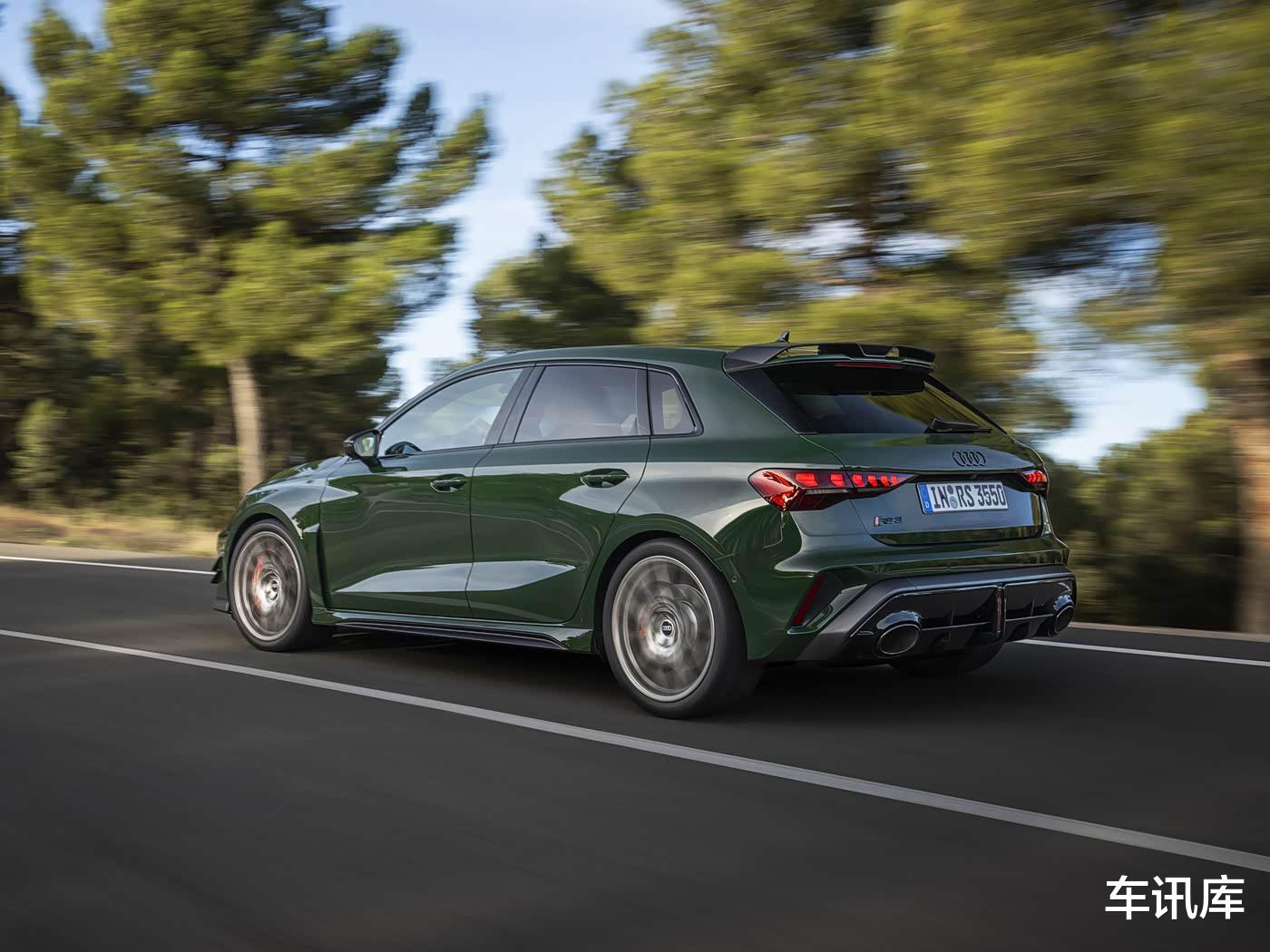在许多朋友关心的动力方面,这款全球限量750辆的奥迪RS 3竞速版,将搭载一台2.5T五缸发动机,最大输出高达400马力,匹配的是7速双离合变速箱,并且拥有quattro全轮驱动系统,动力表现可谓是相当强劲。除此以外,该车的底盘也进行了一系列升级,搭载全新的三向可调式减震器和后防倾杆,再加上陶瓷刹车盘的加持,也让该车的操控性有着显著提升。