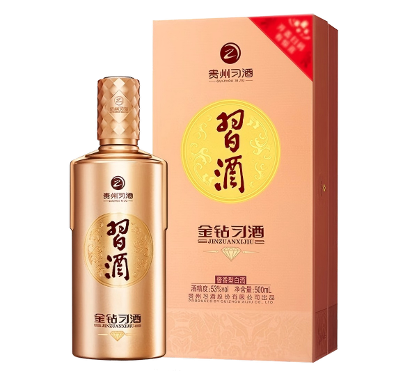 金钻习酒是贵州习酒 2017 年推出的战略产品,主打"轻奢商务"和"高端宴请" 场景,是习酒三大单品之一。采用传统 12987 坤沙工艺,5 年以上基酒勾调。相比传统酱香的浓烈霸道,它更显“温润如玉”特点,适合初尝酱酒的酒友。
