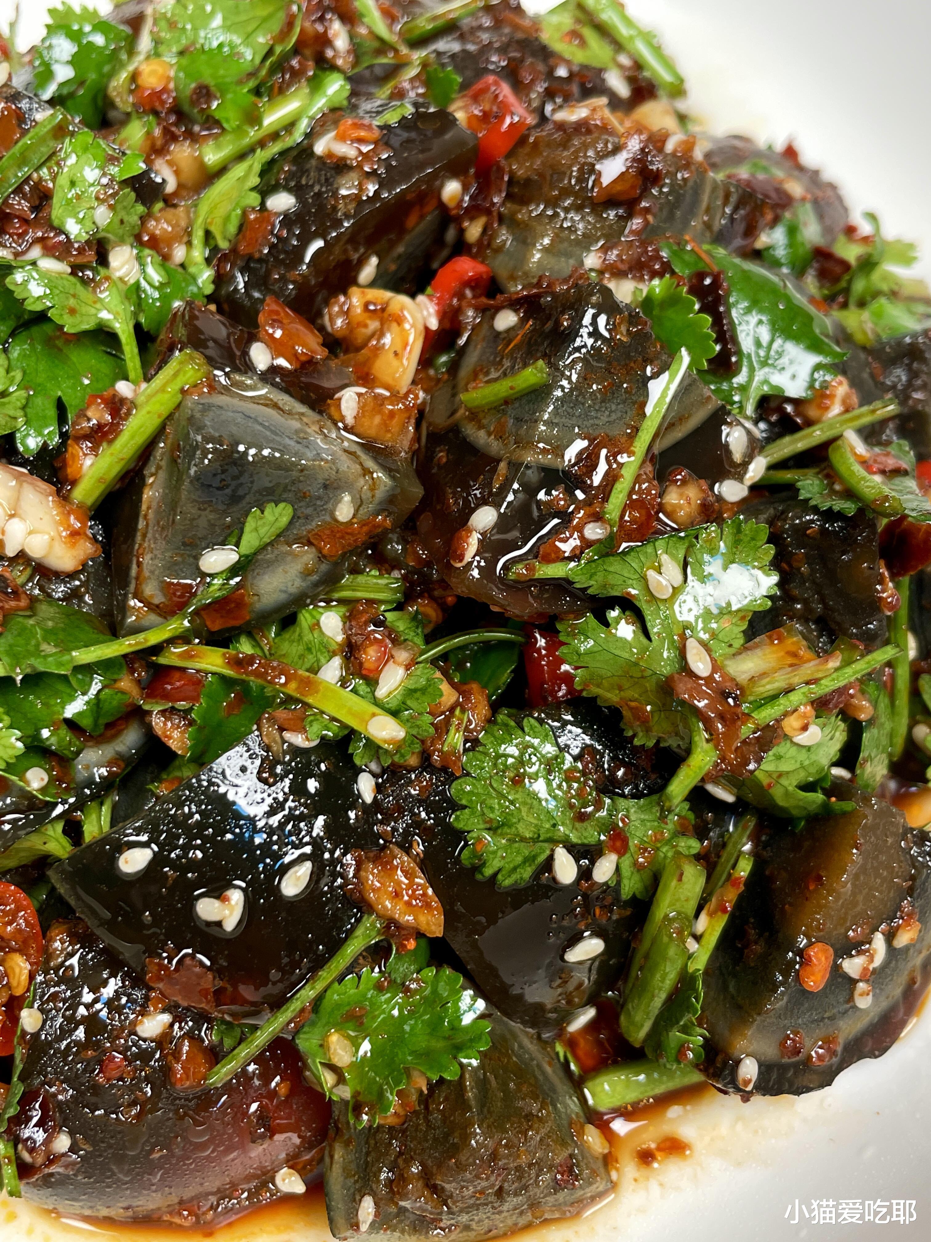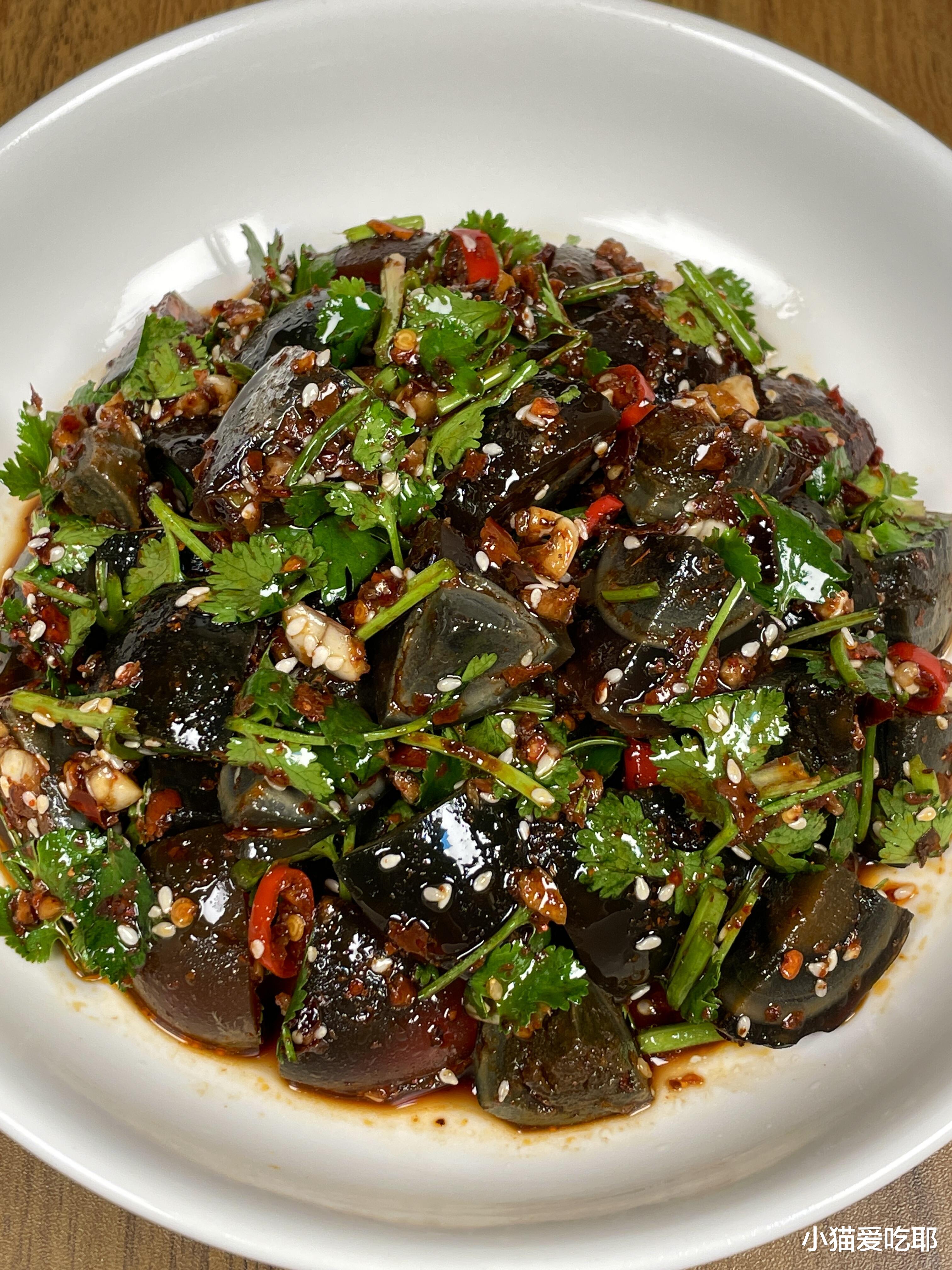 说到这道菜,我还真有一段小故事。那是一个慵懒的周末,我突然想吃点开胃的东西。在冰箱里翻来翻去,发现了几个皮蛋和一把快蔫了的香菜。本以为它们会成为被遗忘的食材,没想到搭配在一起,竟然碰撞出了如此美妙的火花。第一口下去,皮蛋的绵软、香菜的清爽、调料的香辣瞬间在嘴里爆发,那种满足感让我瞬间爱上了这道菜。从那以后,它就成了我家餐桌上的常客,每次做都有种小小的成就感。