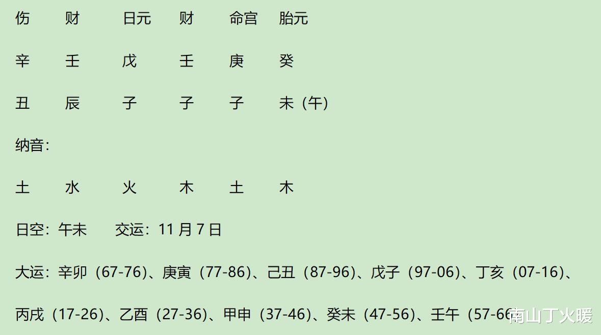 3子暗冲1午,午这个强根一直存在到壬午运,这个最好,预计是长寿的