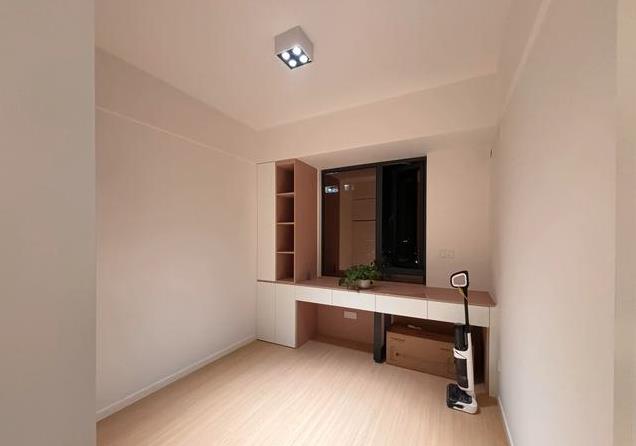 这是次卧,利用窗户的位置设计了书桌柜,可以非常方便家里小孩写作业或者看书,位置都是足够的。