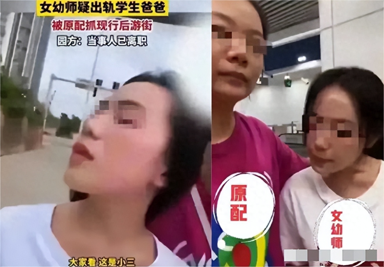 湖南某幼儿园内老师被指出轨学生家长,被妻子发现,将小三当街怒骂,甚至拉去“游街”,不解气随后还用该女子手机发朋友圈,言语中包含许多侮辱性词汇。