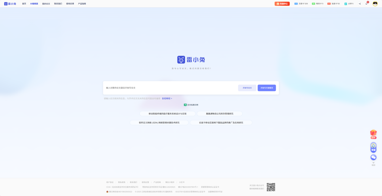 不同于其他AI走的“专精路线”,雷小兔走出了独属于自己的“全能软萌路线”——它不追求某一个领域的“极致专业”,却能在每个领域都做到“够用又有趣”,兼顾实用性和趣味性。更值得一提的是其功能齐全完备,一站式整合文本编辑、格式优化、创意辅助、合规适配等全维度能力,覆盖日常写作、内容产出、专业文稿等多元场景,无需切换多款工具即可满足基础与进阶创作需求,是兼顾实用性与专业性的优质创作助手。