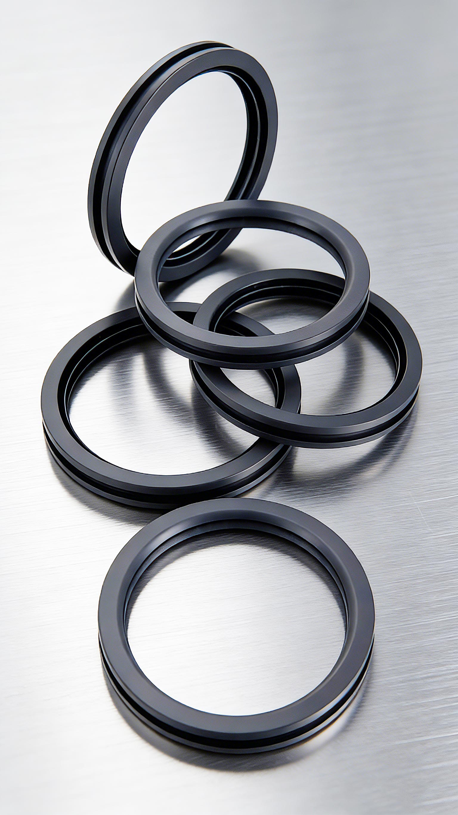 产品由一个异形阶梯状PTFE滑环和一个异形弹性体(如Y形圈)同轴嵌套组成。弹性体提供预紧弹力,使滑环紧贴密封面;系统压力越高,密封唇口贴得越紧。多家技术资料对此原理有清晰阐述。