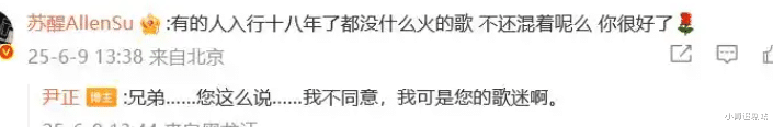 尹正回复,别这么说,我不同意,我可是您的歌迷啊。