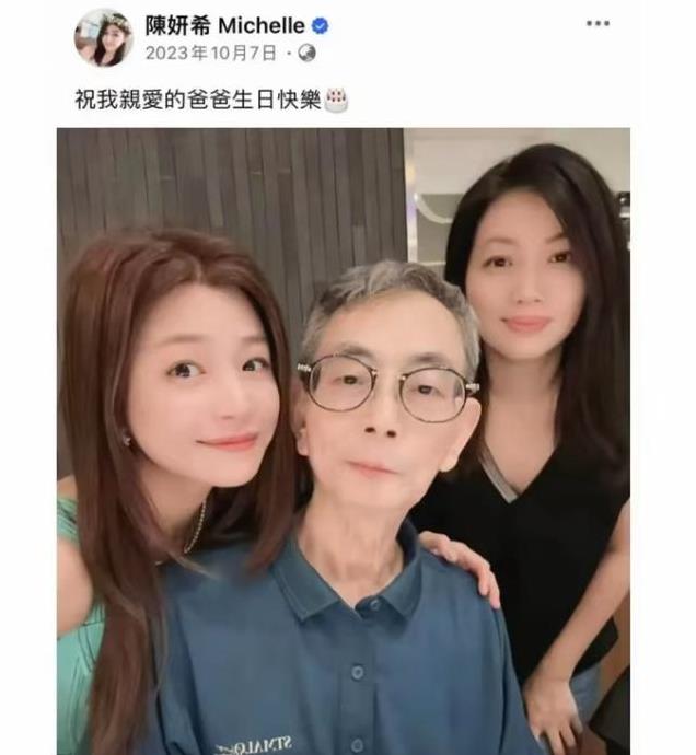 时间来到2023年,陈妍希曾分享了一张和父亲的合照,这天是父亲的生日。