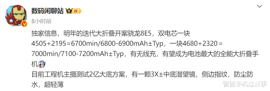 爆料还提到支持无线充电,考虑到大容量电池和无线充电功能往往需要更多的内部空间,这一组合对结构设计提出了更高要求。