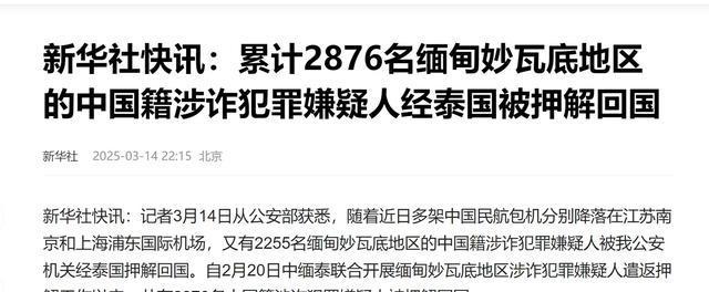 2025年3月,随着中缅泰三国联合执法行动的深入,2876名电诈分子被押解回国,妙瓦底的电诈园区被彻底清剿,其背后盘踞的跨国犯罪网络也被连根拔起。