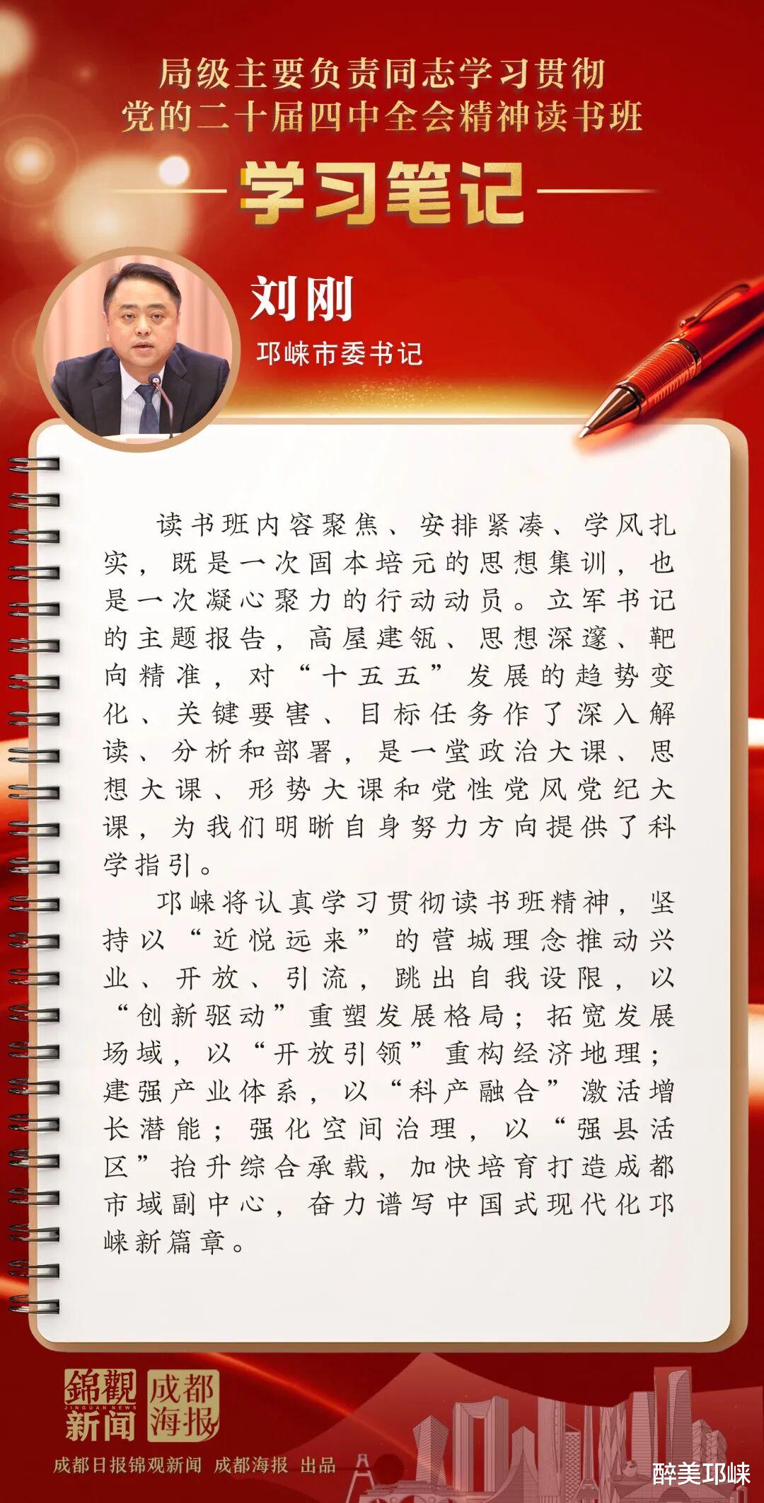 邛崃市委书记刘刚在读书班笔记中这样写道: