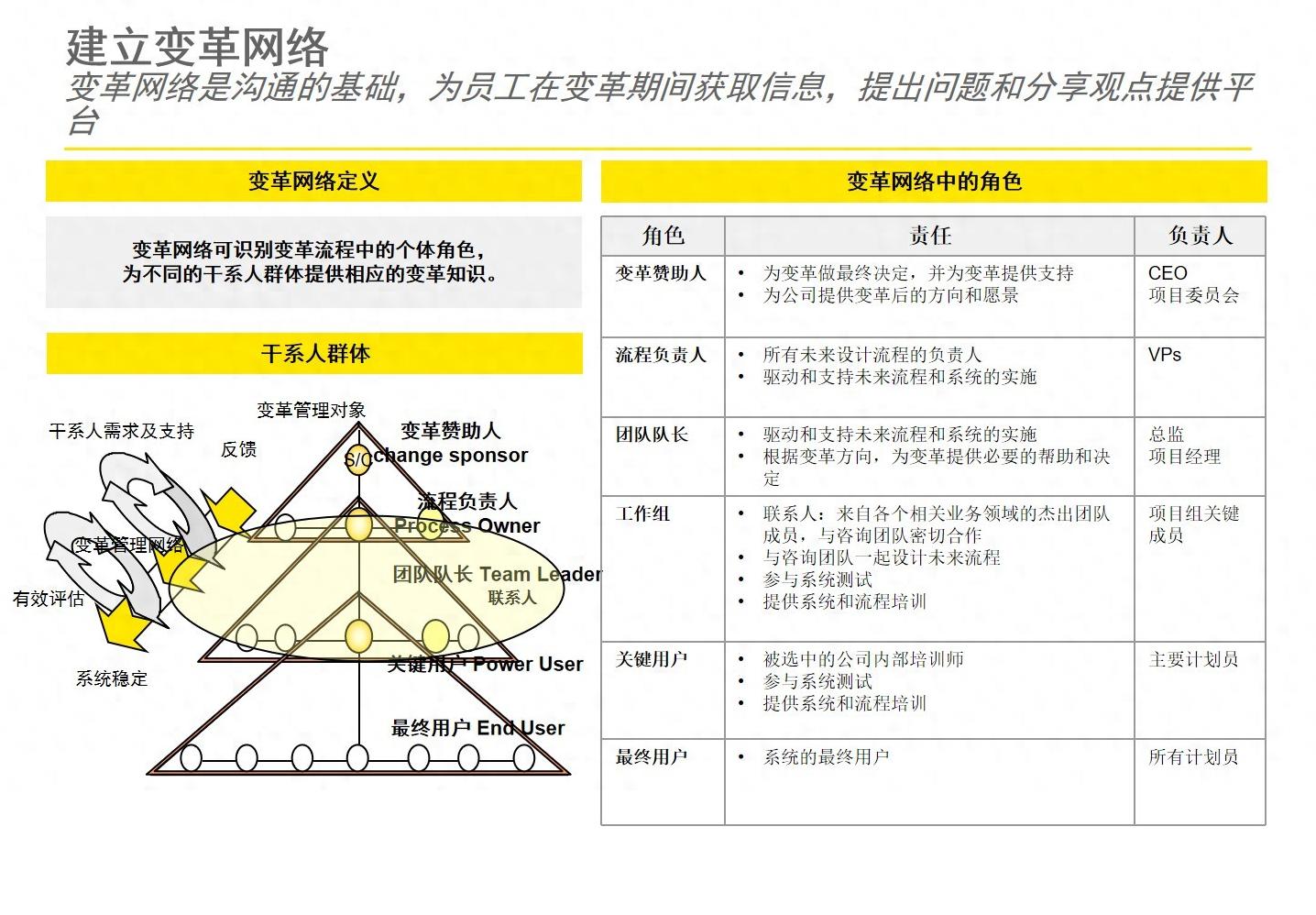 关键人员的参与对变革的成败起决定性作用。