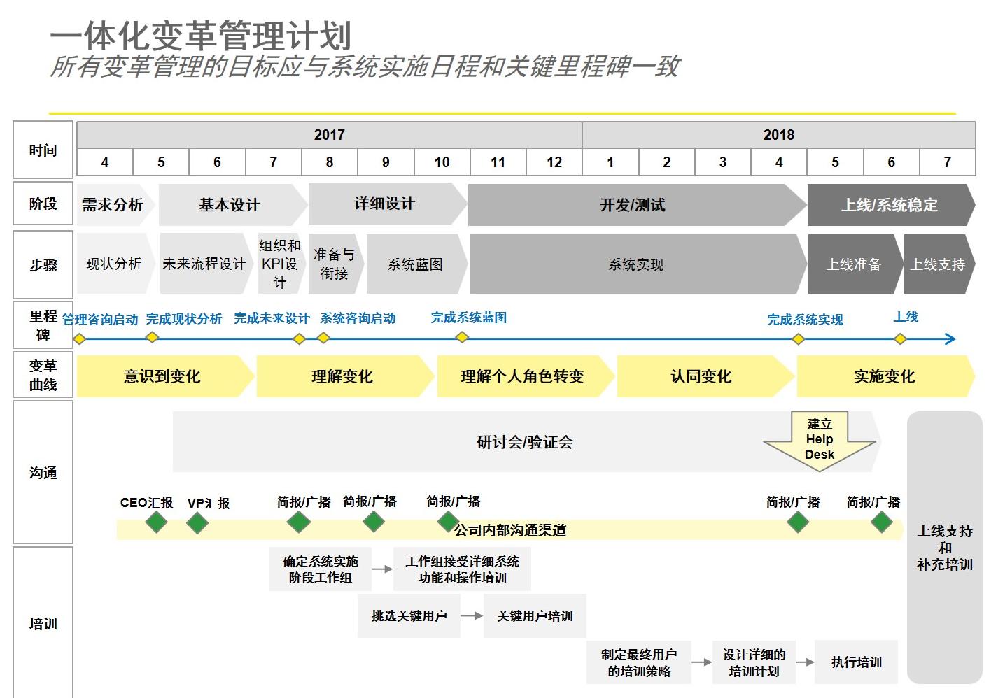 公司在推行RGB系统时,设计了一条清晰的变革管理曲线,用于指导变革的每一个步骤。