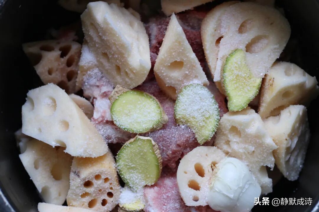 1、食材处理:将排骨洗净,放入冷水中焯水,去除血水和杂质。莲藕处理:将洪湖粉藕洗净去皮,切成厚片。
