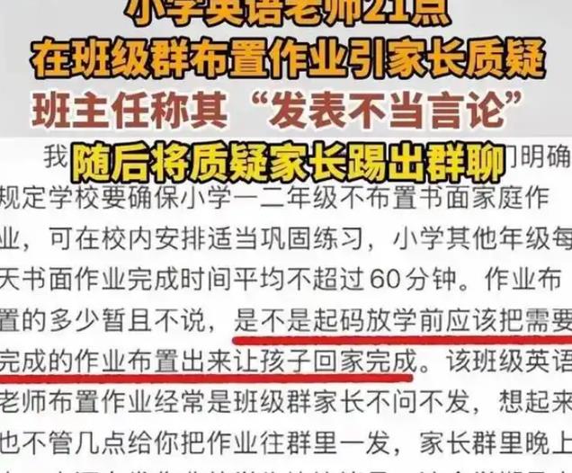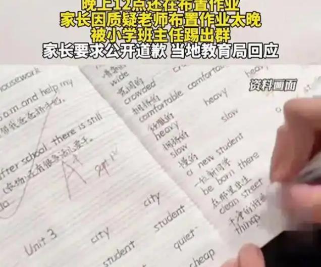 参考资料:光明网《家长在群里质疑布置作业太晚,被班主任踢出群!当地教育局回应》