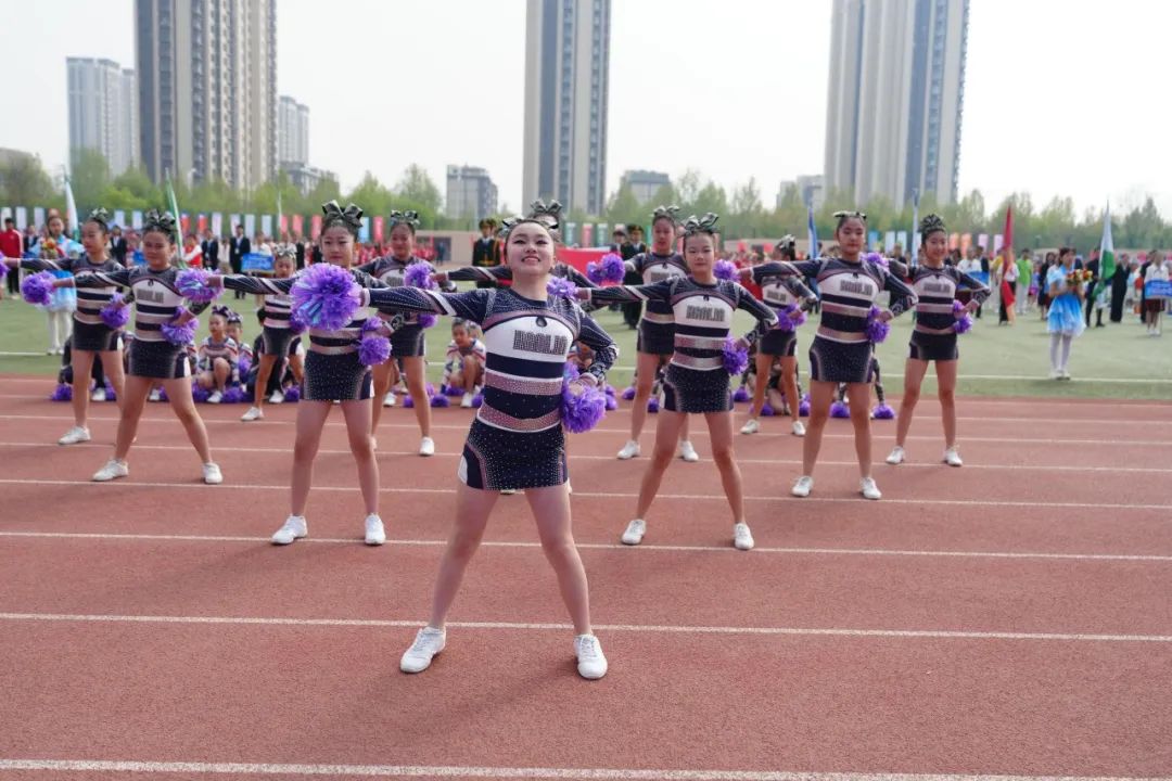 在方阵入场式表演中,我校的啦啦操方阵以充满活力的姿态展示体育与教育融合所取得的显著成就。啦啦操方块队员们手持跃动彩球,以活力四射的舞步点燃赛场热情。她们用整齐的动作、灿烂的笑容和青春的律动,为运动员们加油助威,共同谱写着瀚林体育发展的新篇章。