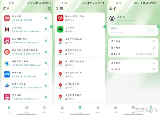 打开APP的第一眼,可以看到界面风格是极简风,没有花里胡哨的广告,直接分为“首页”、“发现”、“我的”这三个板块,新手也能快速上手。过去灰灰打开知乎热榜要经历“解锁屏幕-找APP-点击打开-切换热榜页-下拉刷新”这五步,而现在在煎饺中设置指令后,只需说出“打开知乎热榜”,手机3秒内就能自动完成全流程,效率提升立竿见影。