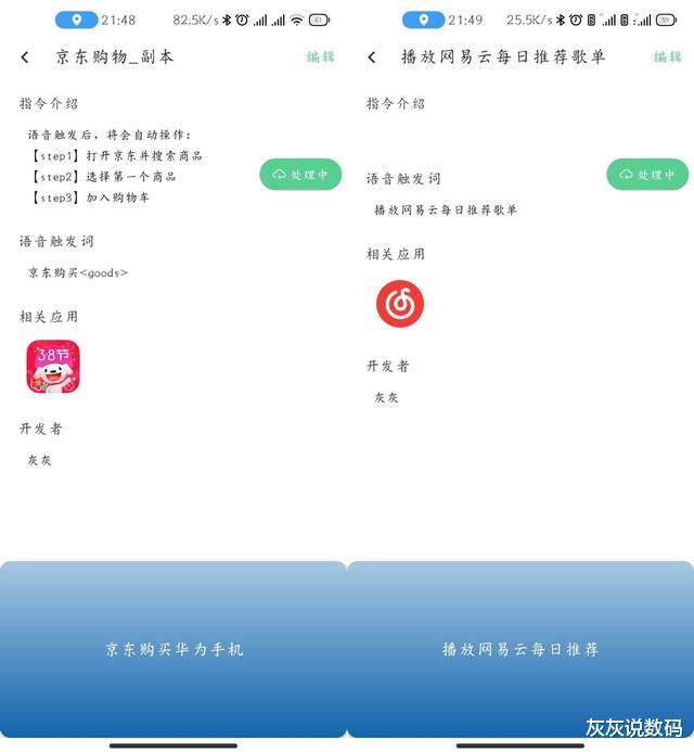 煎饺最贴心的设计,在于对不同技术水平用户的兼容,实现了“0门槛入门,高上限探索”。对于不懂代码的普通用户,“动作录制”功能堪称神器,只需手动完成一次操作流程,APP就会自动记录并生成脚本。我身边的长辈通过录制动作,设置了多平台签到指令,每天一句话就能完成淘宝、京东等APP的签到任务,再也不用记住那些复杂的路径。而职场人则可以创建“给同事发晚餐提醒”的指令,说出关键词就自动打开微信、找到联系人、发送预设文案,杜绝遗忘的烦恼。
