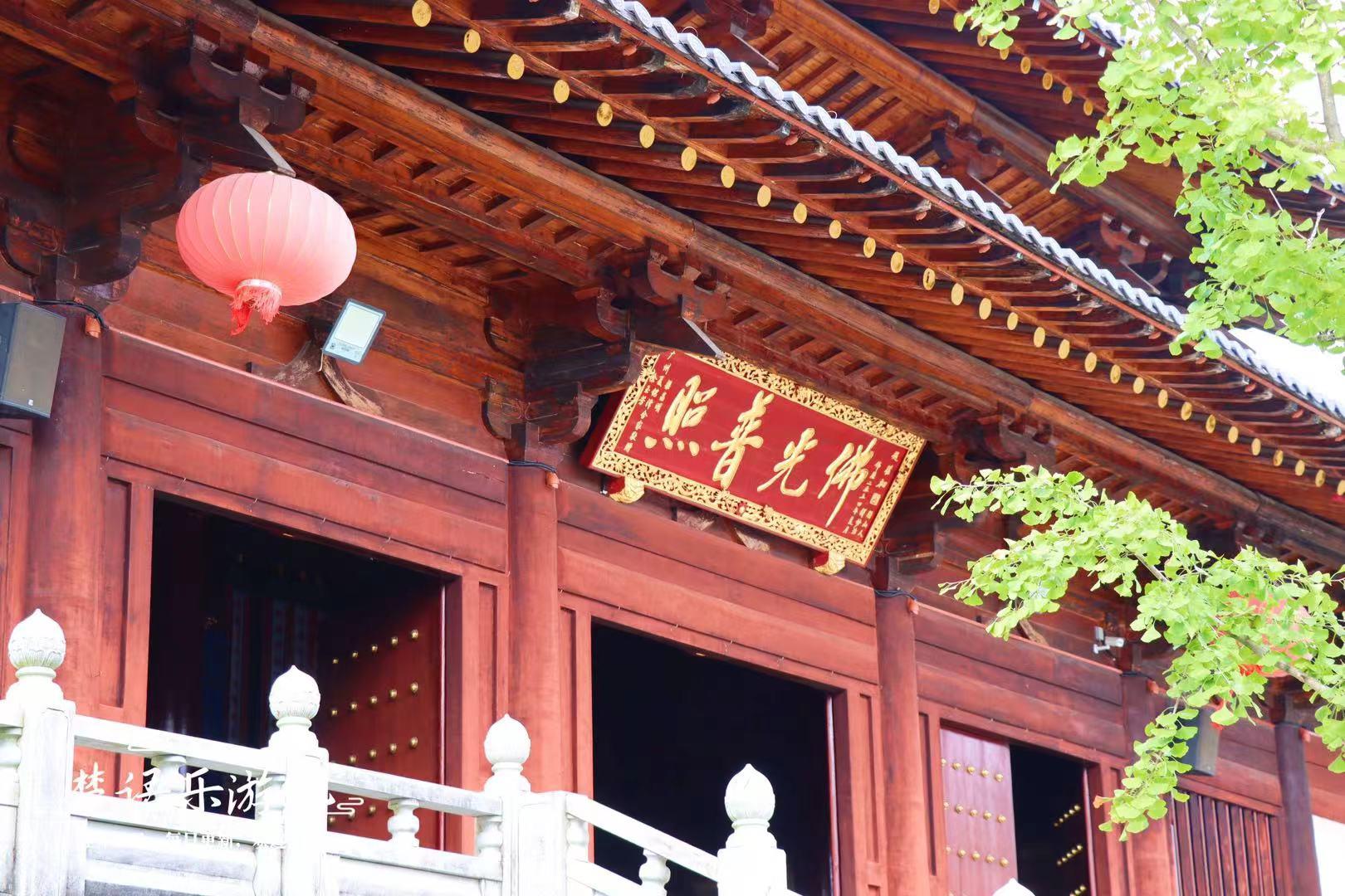 放生池四周有几棵银杏树,树冠不算高大,但枝叶已经变黄,它们掩映着天王殿,让禅境之中又多了几分秋意。不单天王殿,大慈殿等其它殿宇的周边也有不少银杏。此外,每个大殿门前都有几棵桂花树,秋季桂花开,满寺桂花香。