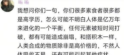 在追求个人信念的时候,也得想想这对社会的影响啊。写在最后也许,她的坚守来自于自身的信仰,或者她真的从素食中得到了好处,不过,大家对明星说的话总是充满了疑问。健康不仅仅靠一种饮食方式来决定,得靠科学的规划和个人的差异化选择。