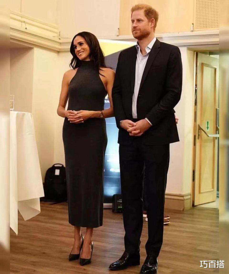 高收腰直筒裙身设计,轻松展示出了她玲珑曼妙的身姿,站在哈里王子身边小鸟依人的姿态让人羡慕,同为深色系的单品搭配模式和谐优雅,无论从哈里的角度出发还是从梅根的角度出发,单品上身效果都不差,值得所有微胖身材的姐妹学习参考