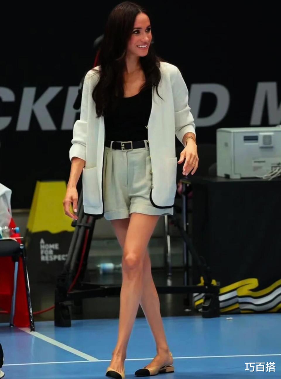 在很多黄黑皮姐妹都会规避纯白色和冷白色单品时,梅根直接照搬照抄。