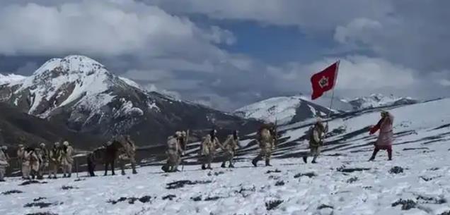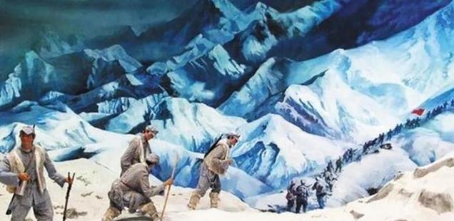 雪山上气候恶劣,寒风刺骨,行军人员的呼吸间全是白雾,地上的积雪又深又滑。