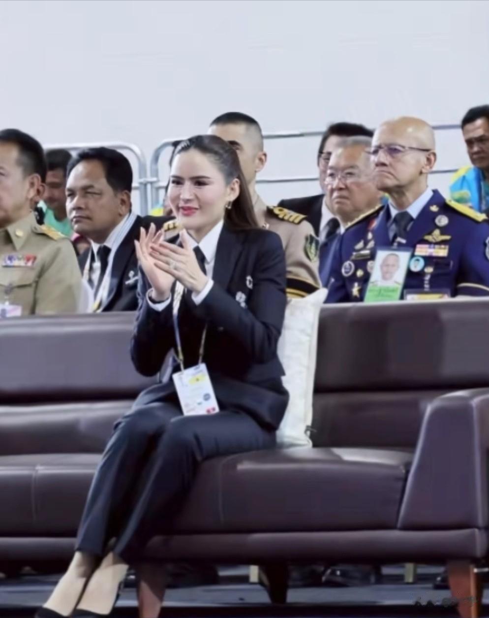 在运动会开幕式时,苏提达王后和泰王一样穿着一身西装革履,系着领带,整个人显得很是干练。