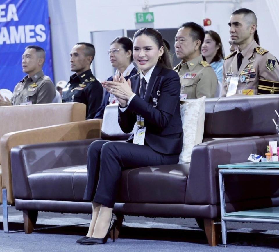 苏提达王后作为运动员参赛,另一边“后宫团”成员之一的欧拉弄也出现在了此次运动会的现场,为三位获得金牌的举重运动员颁奖。